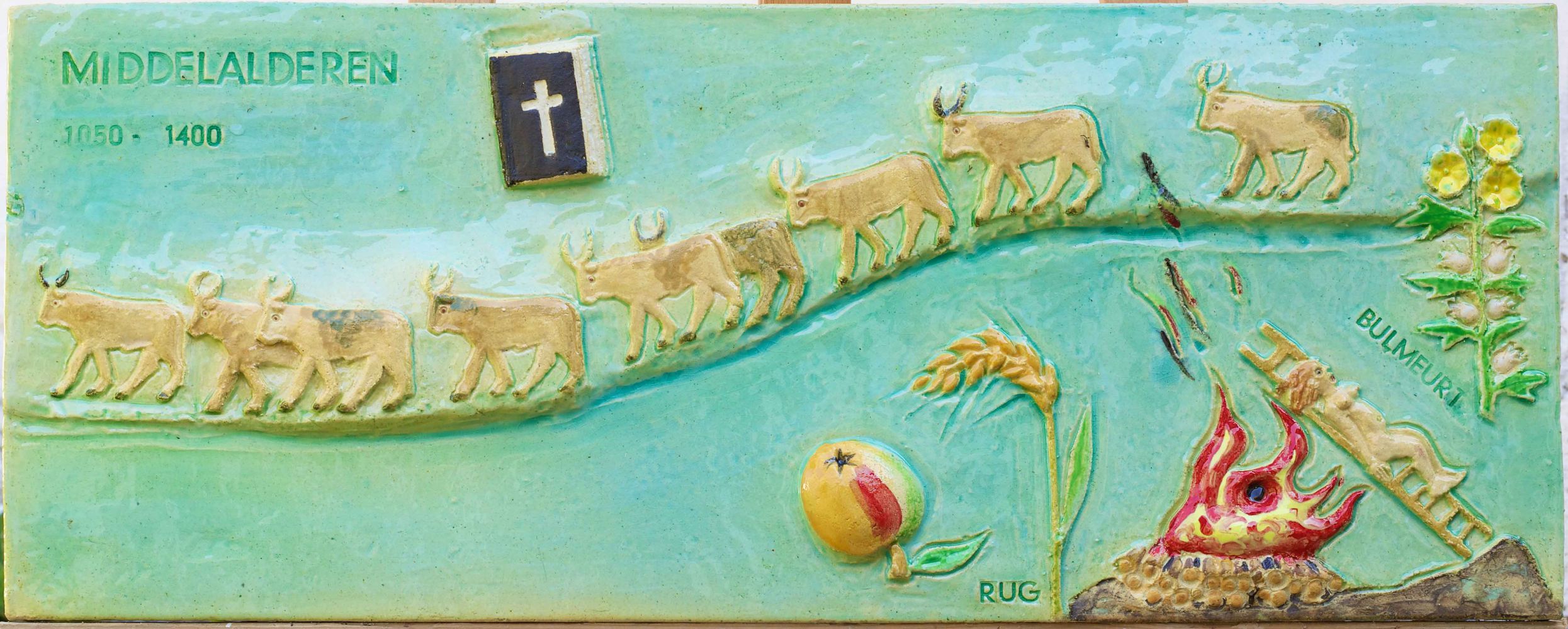 Fremstillet i 4 eksemplarer på Tommerup Keramiske Værksted. 3 eksemplarer placeret langs Hærvejen i Jylland samt 1 sat op på Holbergskolen i København 2012.